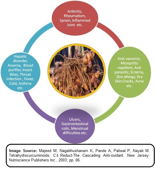 Turmeric is one of the most popular traditionally used herb and also known as “golden spice”. It is grown in various parts of India and other Asian countries and has been held sacred since ancient times. The use of turmeric dates back nearly 4000 years to the Vedic culture in India, where it was used as a culinary spice and had some religious significance where people regarded it as “herb of the sun”.